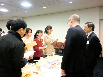 16:30~ 全体交流会 Networking Session 乾杯を合図にスタート。お茶とお菓子を囲み、企業の人たちと交流してください。